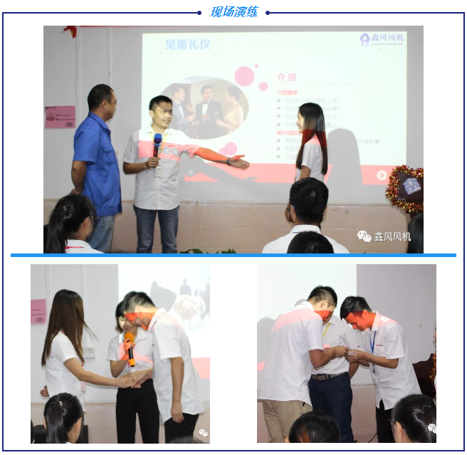 “做人先學禮,以禮行天下”,禮儀教育是人生的第一課。2018年9月10日6點,為進一步提升公司員工整體形象,給客戶提供更好更優(yōu)質(zhì)的服務(wù),鑫風風機特此進行了一場禮儀培訓,對社交禮儀和商務(wù)禮儀等方面進行強化訓練,提升整體精神面貌。